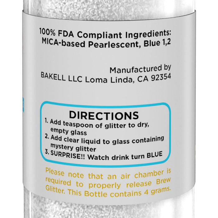 Bakell does not produce or sell alcoholic beverages and is not affiliated with the Alcohol and Tobacco Tax and Trade Bureau (TTB). If you are manufacturing, bottling, labeling, or distributing beverages—especially alcoholic beverages—that include Brew Glitter, it is your responsibility as the beverage producer to confirm and secure all necessary regulatory approvals, including TTB formula and label approval as required. Brew Glitter® does not carry automatic or pre-approved status for use in alcoholic beverages under TTB guidelines.