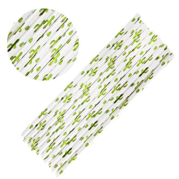 - 1x Green Cactus Print Cake Pop Party Straws (Pack of 24)