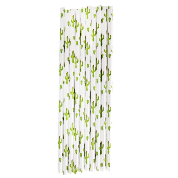 1x Green Cactus Print Cocktail Stirring Straws (24 PC Set)