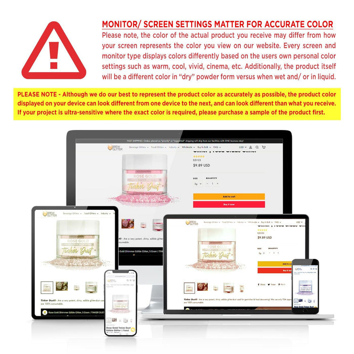 Tinker Dust® - Are a very potent, shiny, edible glitter-dust used for garnishes & food decorating! We use only FDA approved ingredients so these dusts are 100% consumable.