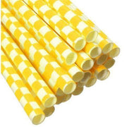 - 1x Yellow and White Checker Print Stirring Straws (Pack of 24)