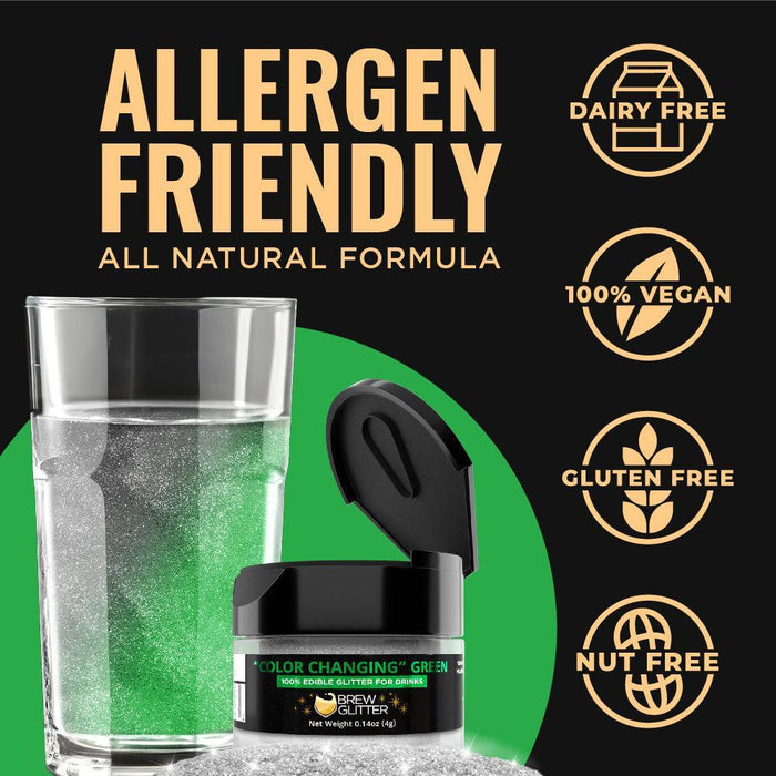 - Color Changing Brew Glitter® is Vegan, Nut Free, Dairy Free & Gluten Free