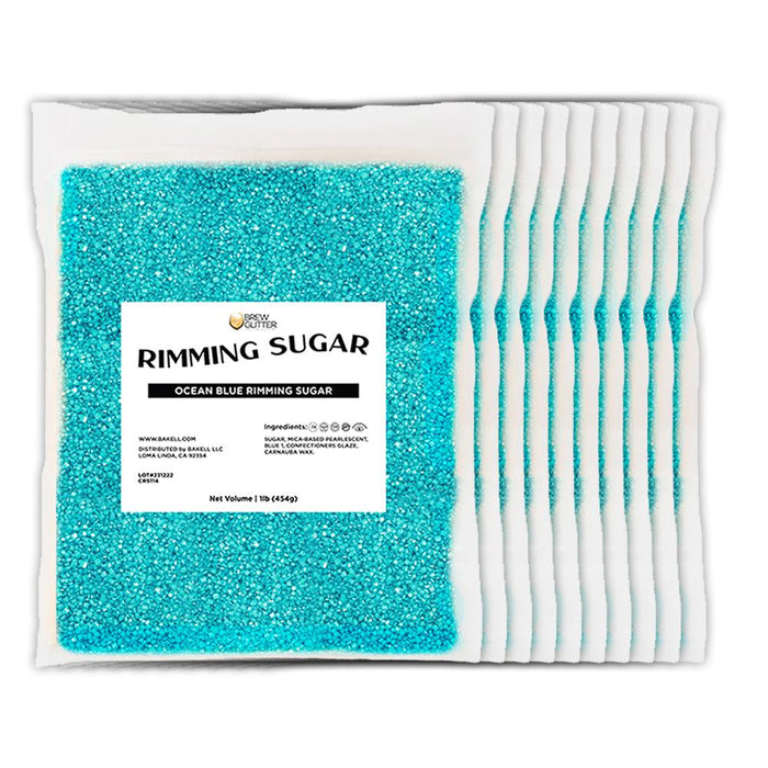 Order cocktail rimming sugar in Ocean Blue for bulk quantities. Large sugar granules easily bind to bar steins, wine glasses, restaurant goblets and more.