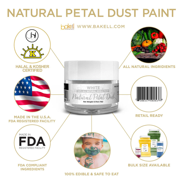 Our NEW Natural Petal Dusts are made with 100% all natural ingredients, are Kosher Pareve certified, Red 3 free, and most importantly, are edible for consumption.