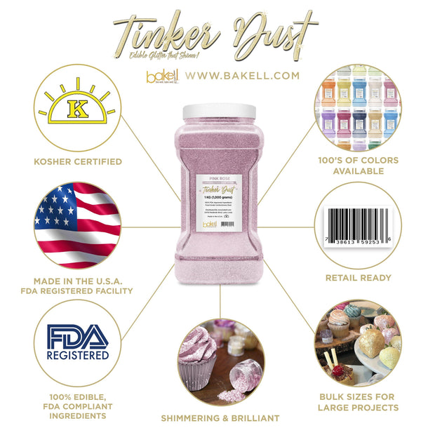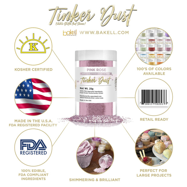 Pink Rose Tinker Dust Food Grade Edible Glitter | Bulk Sizes