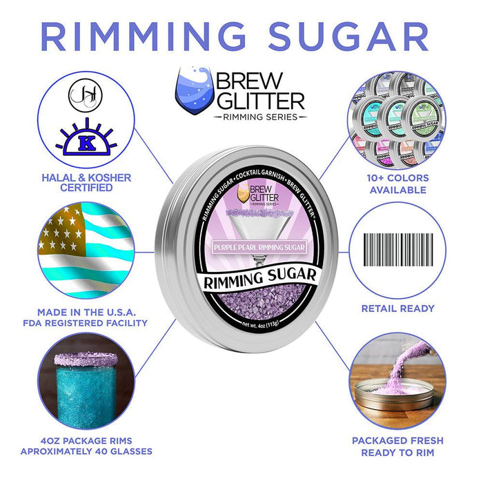Time to shake up your glassware with our new Cocktail Rimming Sugar. Call this the perfect pair with Brew Glitter or Brew Dust to create the masterpiece of your choice! Brew Glitter's cocktail rimming sugar not only creates an aesthetically pleasing drink, but also adds a complimentary sweet accent to your beverage. Our cocktail rimming sugar has different color varieties to choose from.