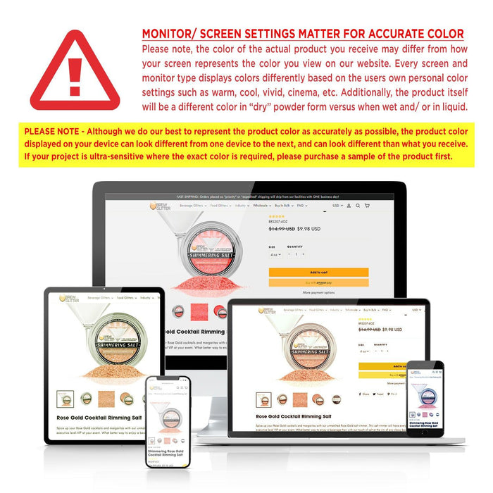 Sometimes it's good to switch from a sweet Rimming Sugar to a NEW Shimmering Red Rimming Salt to garnish the rim of your glass with style. Brewglitter's rimming salt not only creates an aesthetically pleasing drink, but also adds a complementary salty spice to your beverage. Rimming Salt is perfect to pair with our Brew Dust or Brew Glitter.
