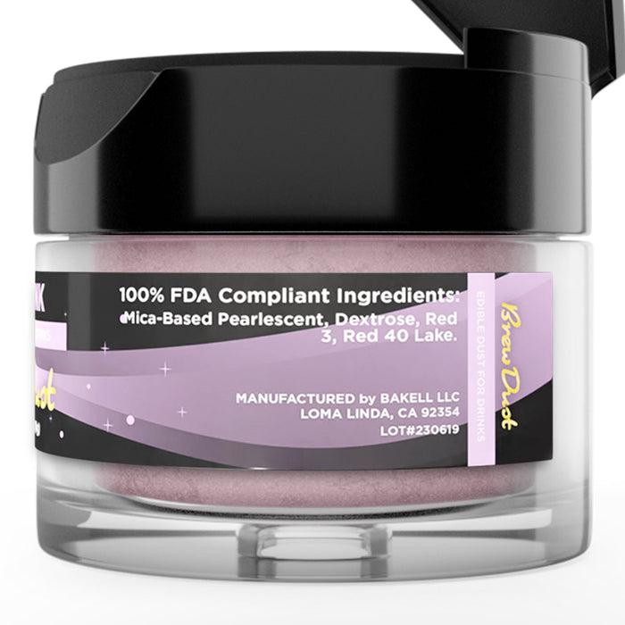 Our Brew Dust products contain various mica powder pigments and undergo a specific manufacturing process that makes the mineral edible and consumable. Common ingredients in edible glitters or dusts may include acacia (gum arabic), maltodextrin, cornstarch, and color additives specifically approved for food use, including mica-based pearlescent pigments and FD&C colors such as FD&C Blue No. 1. Importantly, our products are free of Red Dye No. 3.
