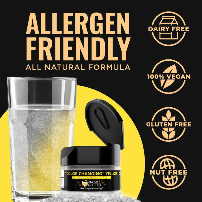 - Color Changing Brew Glitter® is Vegan, Nut Free, Dairy Free & Gluten Free